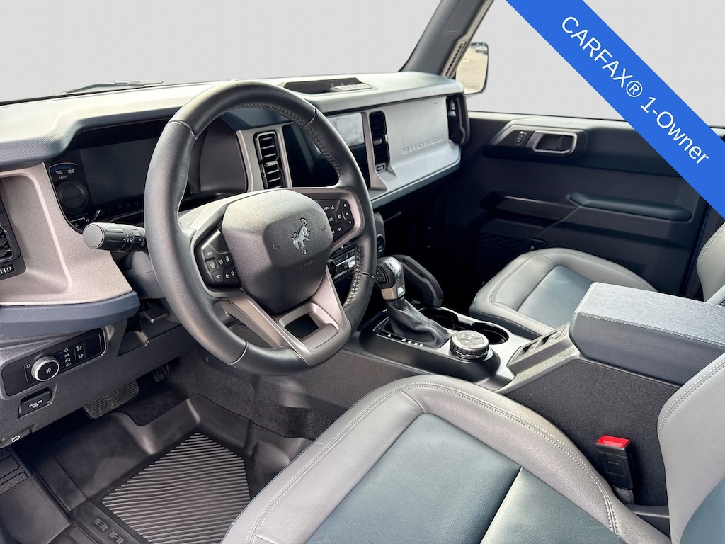 Certified. 2024 Ford Bronco Outer Banks Is nicely equipped with Equipment Group 312A Mid Package, Trailer Tow Package (DIO), Ford Blue Advantage: Blue Certified Certified, Navigation system: Connected Navigation, 18" Bright Machined Aluminum Wheels, 3.73 Axle Ratio, 4-Wheel Disc Brakes, 7 Speakers, ABS brakes, Air Conditioning, Alloy wheels, AM/FM radio: SiriusXM with 360L, AM/FM Stereo, Auto High-beam Headlights, Auto-dimming Rear-View mirror, Automatic temperature control, Brake assist, Carbonized Gray Molded-In-Color Hard Top, Compass, Connected Navigation, Delay-off headlights, Driver door bin, Driver vanity mirror, Dual front impact airbags, Dual front side impact airbags, Electronic Stability Control, Emergency communication system: 911 Assist, Exterior Parking Camera Rear, First Aid Kit, Front anti-roll bar, Front Bucket Seats, Front Center Armrest, Front dual zone A/C, Front fog lights, Front License Plate Bracket, Front reading lights, Front Row Top Panels Storage Bag, Front wheel independent suspension, Fully automatic headlights, Hard Top Sound Deadening Headliner, Heated door mirrors, Heated front seats, Heated Leather-Trimmed/Vinyl Bucket Seats, Illuminated entry, Integrated roll-over protection, Leather Shift Knob, Low tire pressure warning, Mesh Shade Top (DIO), Occupant sensing airbag, Outside temperature display, Overhead airbag, Overhead console, Panic alarm, Passenger door bin, Passenger vanity mirror, Power door mirrors, Power driver seat, Power passenger seat, Power steering, Power windows, Radio data system, Radio: 7 Speakers w/Subwoofer, Rear seat center armrest, Rear-Window Defroster & Washer, Remote keyless entry, Security system, SiriusXM Radio w/360L, Speed control, Split folding rear seat, Steering wheel mounted audio controls, SYNC 4, Tachometer, Telescoping steering wheel, Tilt steering wheel, Traction control, Trip computer, Variably intermittent wipers, and Voltmeter.