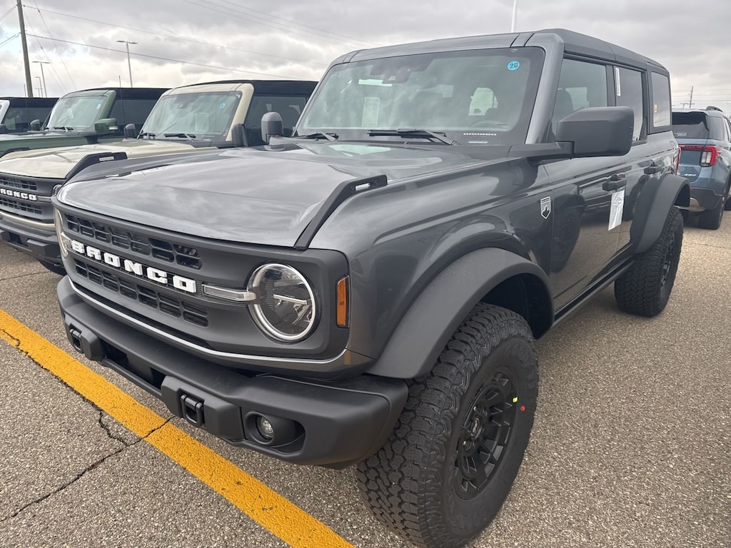 Bronco Big Bend is nicely equipped with Black Diamond Package (Auxiliary Switches, LED Fog Lamps, Powder Coated Steel Front and Rear Bumpers, Rock Rails, Washout Capable Rubberized Flooring, and Wheels: 17" Black High Gloss-Painted Steel), Equipment Group 222A Mid Package (2-Door Intelligent Access with Lock/Unlock, AM/FM Stereo, Ambient Footwell Lighting, Cloth Bucket Seats, Connected Navigation, Driver and Front Passenger Illuminated Sliding Visor Vanity Mirrors, Dual Smart Charging USB Ports, Dual-Zone Electronic Automatic Temperature Control, Front Row Heated Seats, Pro Power Onboard - 400W, Rear Parking Sensors, SiriusXM with 360L, SYNC 4, and Wheels: 17" Carbonized Gray-Painted Aluminum), Ford Connectivity Package (1-Year Included), Sasquatch Package (High Clearance Fender Flares, High Clearance Suspension, Position-Sensitive Bilstein Shock Absorbers, and Wheels: 17" Matte Black Alloy), 4-Wheel Disc Brakes, 7 Speakers, ABS brakes, Air Conditioning, Alloy wheels, AM/FM radio: SiriusXM with 360L, Auto High-Beam Headlamps, Auto High-beam Headlights, BLIS Blind Spot Information System, Brake assist, Carbonized Gray Molded-in-Color Hard Top, Compass, Delay-off headlights, Driver door bin, Driver vanity mirror, Dual front impact airbags, Dual front side impact airbags, Electronic Stability Control, Emergency communication system: 911 Assist, Exterior Parking Camera Rear, Front anti-roll bar, Front Bucket Seats, Front Center Armrest, Front reading lights, Front Row Top Panels and Door Storage Bags, Front wheel independent suspension, Fully automatic headlights, Hard Top Sound Deadening Headliner, Heated door mirrors, Illuminated entry, Integrated roll-over protection, Lane-Keeping System, Low tire pressure warning, Occupant sensing airbag, Outside temperature display, Overhead airbag, Overhead console, Panic alarm, Passenger door bin, Passenger vanity mirror, Power door mirrors, Power steering, Power windows, Pre-Collision Assist with Automatic Emergency Braking, Radio data system, Rear-View Camera, Rear-Window Defroster and Washer, Remote keyless entry, Security system, Speed control, Split folding rear seat, Steering wheel mounted audio controls, Tachometer, Telescoping steering wheel, Tilt steering wheel, Traction control, Trip computer, and Variably intermittent wipers. See dealer for details. Price may include Ford Employee discount. Price does not include licensing costs, registration fees, taxes and dealer doc fee of $280, which are to be paid by the consumer.$750 - Retail Customer Cash. Exp. 04/30/2026