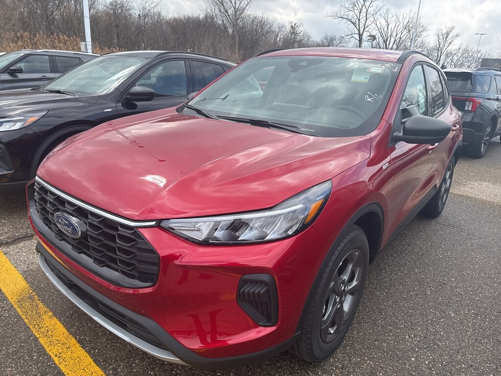 Escape ST-Line is nicely equipped with Cold Weather Package (Heated Front Row Seats, Heated Sideview Mirrors, Heated Steering Wheel, and Remote Starter System), Equipment Group 300A (3.81 Axle Ratio, 4-Way Manual Front Passenger Seat, 8-Way Power Driver Seat, Ford App, Partial Vinyl/Cloth Front Sport Contour Bucket Seats with Red Stitching, Radio: AM/FM Stereo with SiriusXM 360L, SYNC 4, and Wheels: 18" Rock Metallic Painted Aluminum), Tech Pack #1 (Adaptive Cruise Control with Stop-and-Go, Connected Navigation (1-Year Included), Digital Rear View Camera, Evasive Steering Assist, Ford Co-Pilot360 Assist+, Intersection Assist, Predictive Speed Assist, Rear Parking Sensor, and SYNC 4 with Enhanced Voice Recognition), AWD, 4-Wheel Disc Brakes, 6 Speakers, ABS brakes, Air Conditioning, Alloy wheels, AM/FM radio: SiriusXM 360L, Auto High-beam Headlights, Automatic temperature control, Brake assist, Bumpers: body-color, Cargo Mat, Compass, Delay-off headlights, Driver door bin, Driver vanity mirror, Dual front impact airbags, Dual front side impact airbags, Electronic Stability Control, Emergency communication system: SYNC 4 911 Assist, Four wheel independent suspension, Front and Rear Floor Liners with Carpet Mats, Front anti-roll bar, Front Bucket Seats, Front Center Armrest, Front dual zone A/C, Front reading lights, Fully automatic headlights, Heated steering wheel, Illuminated entry, Knee airbag, Low tire pressure warning, Occupant sensing airbag, Outside temperature display, Overhead airbag, Overhead console, Panic alarm, Passenger door bin, Passenger vanity mirror, Power door mirrors, Power driver seat, Power steering, Power windows, Radio data system, Rear anti-roll bar, Rear reading lights, Rear seat center armrest, Rear window defroster, Rear window wiper, Remote keyless entry, Speed control, Speed-sensing steering, Speed-Sensitive Wipers, Split folding rear seat, Spoiler, Sport steering wheel, Steering wheel mounted audio controls, Tachometer, Telescoping steering wheel, Tilt steering wheel, Traction control, Trip computer, and Variably intermittent wipers. See dealer for details. Price may include Ford Employee discount. Price does not include licensing costs, registration fees, taxes and dealer doc fee of $280, which are to be paid by the consumer.$2000 - Bonus Customer Cash. Exp. 03/31/2026