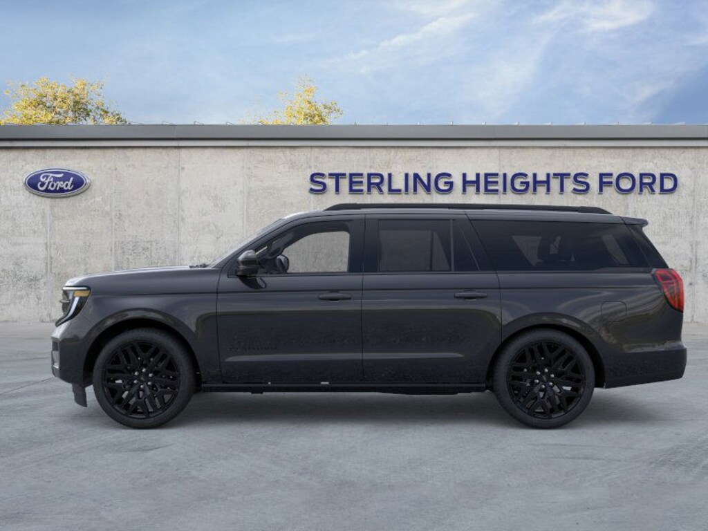 Expedition Max Platinum is nicely equipped with Driver's Package (Radio: B&O Play Unleashed and SiriusXM with 360L), Equipment Group 600A Standard Package (2nd Row Power-Folding Captain's Chairs, 3.73 Axle Ratio, BlueCruise Equipped (90-Day Trial), Ford Digital Experience, Heated and Ventilated Leather Front Captain's Chairs, Power Tilt/Telescopic Steering Wheel with Memory, Radio: B&O Sound System by Bang and Olufsen, and Wheels: 20" x 8.5" Ebony Bright Machined Aluminum), Ford Connectivity Package (1-Year Included), Stealth Appearance Package (Black Belt Molding, Black Expedition Lettering on Hood, Black Headlamp Bezel with Ebony Trim Applique, Black Platinum Badge on Tailgate, Black Roof Rails, Carbon Black Front Bumper/Fascia, Rear Side Windows Laminated Glass, and Signature Grille Lighting), Stealth Performance Package (Black Onyx Painted Power Deployable Running Boards, Engine Sound Enhancer, High Flow Exhaust System, and Wheels: 24" x 9.5" Ebony Painted Aluminum), 10 Speakers, 3rd row seats: split-bench, 4-Wheel Disc Brakes, ABS brakes, Air Conditioning, Alloy wheels, AM/FM radio: SiriusXM with 360L, Apple CarPlay/Android Auto, Auto High-beam Headlights, Auto-dimming door mirrors, Auto-dimming Rear-View mirror, Automatic temperature control, Brake assist, Bumpers: body-color, Compass, Delay-off headlights, Driver door bin, Driver vanity mirror, Dual front impact airbags, Dual front side impact airbags, Electronic Stability Control, Emergency communication system: 911 Assist, Exterior Parking Camera Rear, Four wheel independent suspension, Front anti-roll bar, Front Bucket Seats, Front Center Armrest, Front dual zone A/C, Front reading lights, Fully automatic headlights, Garage door transmitter, Genuine wood dashboard insert, Genuine wood door panel insert, Heated door mirrors, Heated front seats, Heated rear seats, Heated steering wheel, Illuminated entry, Intersection Assist, Leather steering wheel, Low tire pressure warning, Memory seat, Navigation System, Occupant sensing airbag, Outside temperature display, Overhead airbag, Overhead console, Panic alarm, Passenger door bin, Passenger vanity mirror, Power door mirrors, Power driver seat, Power moonroof: Vista Roof, Power passenger seat, Power steering, Power windows, Radio data system, Rain sensing wipers, Rear air conditioning, Rear anti-roll bar, Rear reading lights, Rear window defroster, Rear window wiper, Reclining 3rd row seat, Remote keyless entry, Security system, Speed control, Speed-sensing steering, Speed-Sensitive Wipers, Split folding rear seat, Spoiler, Steering wheel memory, Steering wheel mounted audio controls, Tachometer, Telescoping steering wheel, Tilt steering wheel, Traction control, Trip computer, Turn signal indicator mirrors, Variably intermittent wipers, Ventilated front seats, Voltmeter, and Wheels: 22" x 9.0" Ebony Bright Machined Face Aluminum.