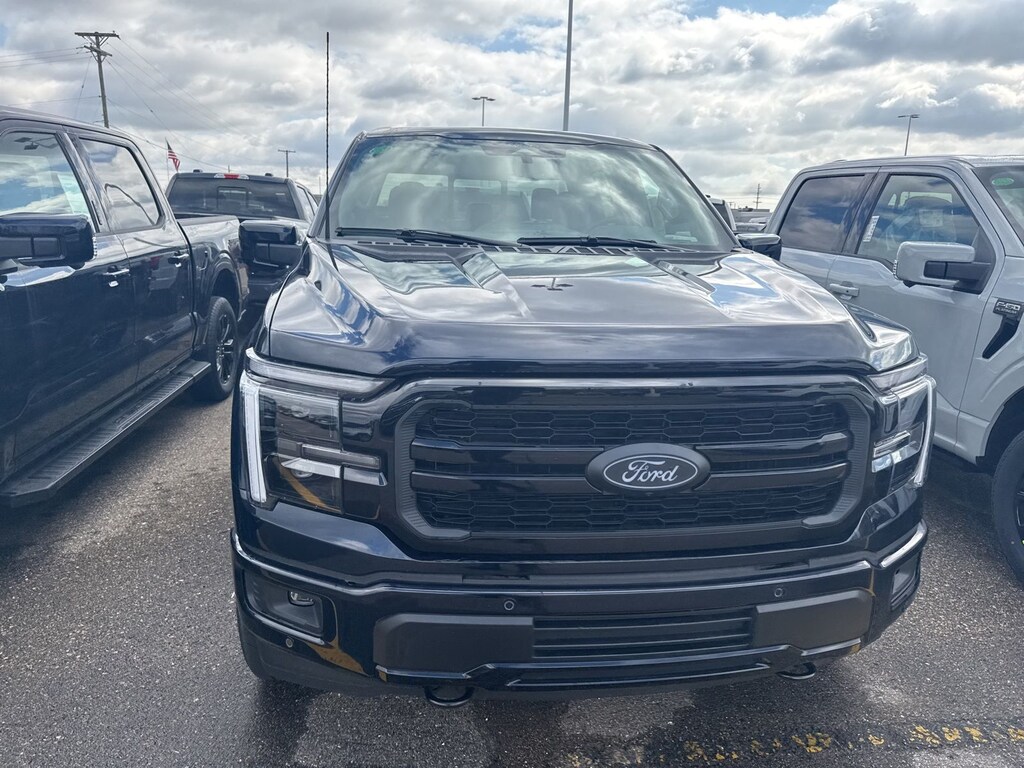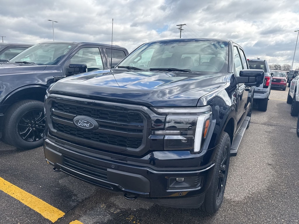 F-150 Lariat is nicely equipped with Bed Utility Package (4 Pickup Box Tie-Down Plates, Bed Storage Boxes, LED Box Lighting, and Tailgate Step with Work Surface), Equipment Group 501A Mid (3.31 Axle Ratio, ActiveX Trimmed Bucket Seats, Illuminated Driver and Passenger Visors, Power-Adjustable Pedals with Memory, Power-Sliding Rear Window, Radio: B&O Sound System by Bang and Olufsen, SYNC 4 with Enhanced Voice Recognition, and Wheels: 20" Chrome-Like PVD), Ford Connectivity Package (1-Year Included), Internet access capable: 5G Modem - Ford Connectivity Package, Lariat Black Appearance Package (Black Exterior Badging, Black Grille, Black Taillamp Bezels, Body-Color Front and Rear Bumpers, Dark Interior Appliques, and Gray Box Side Decal), 4WD, 4-Wheel Disc Brakes, 8 Speakers, ABS brakes, Air Conditioning, Alloy wheels, AM/FM radio: SiriusXM with 360L, Auto High-beam Headlights, Auto-dimming door mirrors, Auto-dimming Rear-View mirror, Automatic temperature control, Brake assist, Bumpers: chrome, Chrome wheels, Compass, Delay-off headlights, Driver door bin, Driver vanity mirror, Driver's Side SecuriCode Keyless-Entry Keypad, Dual front impact airbags, Dual front side impact airbags, Electronic Stability Control, Emergency communication system: SYNC 4 911 Assist, Front anti-roll bar, Front Bucket Seats, Front Center Armrest, Front dual zone A/C, Front fog lights, Front reading lights, Front wheel independent suspension, Fully automatic headlights, Garage door transmitter, Heated door mirrors, Heated front seats, Heated steering wheel, Illuminated entry, Low tire pressure warning, Memory seat, Navigation system: Connected Navigation, Occupant sensing airbag, Outside temperature display, Overhead airbag, Overhead console, Panic alarm, Passenger door bin, Passenger vanity mirror, Power door mirrors, Power driver seat, Power passenger seat, Power steering, Power windows, Radio data system, Rain sensing wipers, Rear reading lights, Rear seat center armrest, Rear step bumper, Rear window defroster, Remote keyless entry, Security system, Speed control, Split folding rear seat, Steering wheel mounted audio controls, Tachometer, Telescoping steering wheel, Tilt steering wheel, Traction control, Trip computer, Turn signal indicator mirrors, Twin Panel Moonroof, Variably intermittent wipers, Ventilated front seats, and Wheels: 18" Chrome-Like PVD. See dealer for details. Price may include Ford Employee discount. Price does not include licensing costs, registration fees, taxes and dealer doc fee of $280, which are to be paid by the consumer.$2500 - Retail Customer Cash. Exp. 04/30/2026