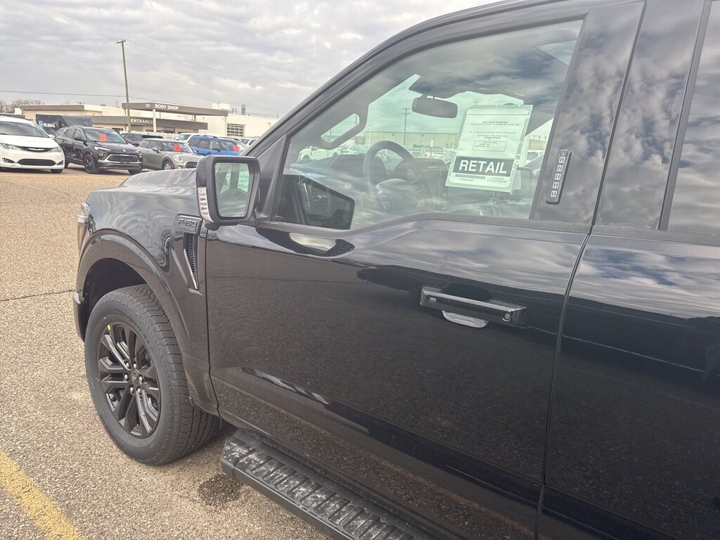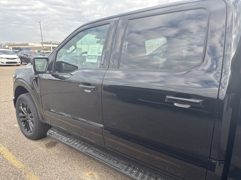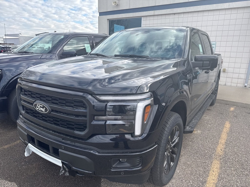F-150 Lariat is nicely equipped with Equipment Group 502A High (2nd Row Heated Seats, 3.31 Axle Ratio, ActiveX Trimmed Bucket Seats, Ambient Lighting - Ice Blue Color Only, Head-Up Display, Illuminated Driver and Passenger Visors, Power-Adjustable Pedals with Memory, Power-Sliding Rear Window, Radio: B&O Unleashed Sound System by Bang & Olufsen, and Wheels: 20" Chrome-Like PVD), Ford Connectivity Package (1-Year Included), Internet access capable: 5G Modem - Ford Connectivity Package, Lariat Black Appearance Package (Black Exterior Badging, Black Grille, Black Taillamp Bezels, Body-Color Front and Rear Bumpers, Body-Color Skull Caps and Door Handles, Dark Interior Appliques, and Gray Box Side Decal), Mobile Office Package (Console Worksurface, Partitioned Lockable Rear Storage, and Wireless Charging), 4WD, 4-Wheel Disc Brakes, 8 Speakers, ABS brakes, Air Conditioning, Alloy wheels, AM/FM radio: SiriusXM with 360L, Auto High-beam Headlights, Auto-dimming door mirrors, Auto-dimming Rear-View mirror, Automatic temperature control, Brake assist, Bumpers: chrome, Chrome wheels, Compass, Delay-off headlights, Driver door bin, Driver vanity mirror, Driver's Side SecuriCode Keyless-Entry Keypad, Dual front impact airbags, Dual front side impact airbags, Electronic Stability Control, Emergency communication system: SYNC 4 911 Assist, Front anti-roll bar, Front Bucket Seats, Front Center Armrest, Front dual zone A/C, Front fog lights, Front reading lights, Front wheel independent suspension, Fully automatic headlights, Garage door transmitter, Heated door mirrors, Heated front seats, Heated steering wheel, Illuminated entry, Low tire pressure warning, Memory seat, Navigation system: Connected Navigation, Occupant sensing airbag, Outside temperature display, Overhead airbag, Overhead console, Panic alarm, Passenger door bin, Passenger vanity mirror, Power door mirrors, Power driver seat, Power passenger seat, Power steering, Power windows, Radio data system, Radio: B&O Sound System by Bang and Olufsen, Rain sensing wipers, Rear reading lights, Rear seat center armrest, Rear step bumper, Rear window defroster, Remote keyless entry, Security system, Speed control, Split folding rear seat, Steering wheel mounted audio controls, SYNC 4 with Enhanced Voice Recognition, Tachometer, Telescoping steering wheel, Tilt steering wheel, Traction control, Trip computer, Turn signal indicator mirrors, Twin Panel Moonroof, Variably intermittent wipers, Ventilated front seats, and Wheels: 18" Chrome-Like PVD.