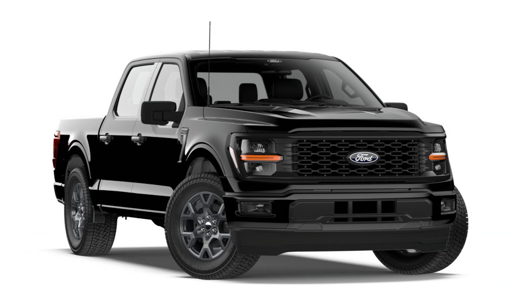 F-150 STX is nicely equipped with Equipment Group 200A Mid (12" Cluster Display, 3.55 Axle Ratio, LED Fog Lamps with LED Cornering Lamp, Radio: AM/FM Stereo with SiriusXM 360L, SYNC 4 with Enhanced Voice Recognition, Unique Sport Cloth 40/Console/40 Front-Seats, and Wheels: 20" Dark Gray Aluminum), Ford Connectivity Package (1-Year Included), GVWR: 6,650 lbs Payload Package, Internet access capable: 5G Modem - Ford Connectivity Package, 4WD, 4-Wheel Disc Brakes, 6 Speakers, ABS brakes, Air Conditioning, Alloy wheels, AM/FM radio: SiriusXM with 360L, Auto High-beam Headlights, Brake assist, Bumpers: body-color, Compass, Delay-off headlights, Driver door bin, Dual front impact airbags, Dual front side impact airbags, Electronic Stability Control, Emergency communication system: SYNC 4 911 Assist, Front anti-roll bar, Front Bucket Seats, Front Center Armrest, Front reading lights, Front wheel independent suspension, Fully automatic headlights, Heated door mirrors, Illuminated entry, Low tire pressure warning, Occupant sensing airbag, Outside temperature display, Overhead airbag, Overhead console, Panic alarm, Passenger door bin, Passenger vanity mirror, Power door mirrors, Power steering, Power windows, Radio data system, Rear Parking Sensors, Rear step bumper, Rear window defroster, Remote keyless entry, Security system, Speed control, Split folding rear seat, Steering wheel mounted audio controls, Tachometer, Telescoping steering wheel, Tilt steering wheel, Traction control, Trip computer, Variably intermittent wipers, and Wheels: 18" Gloss Black.