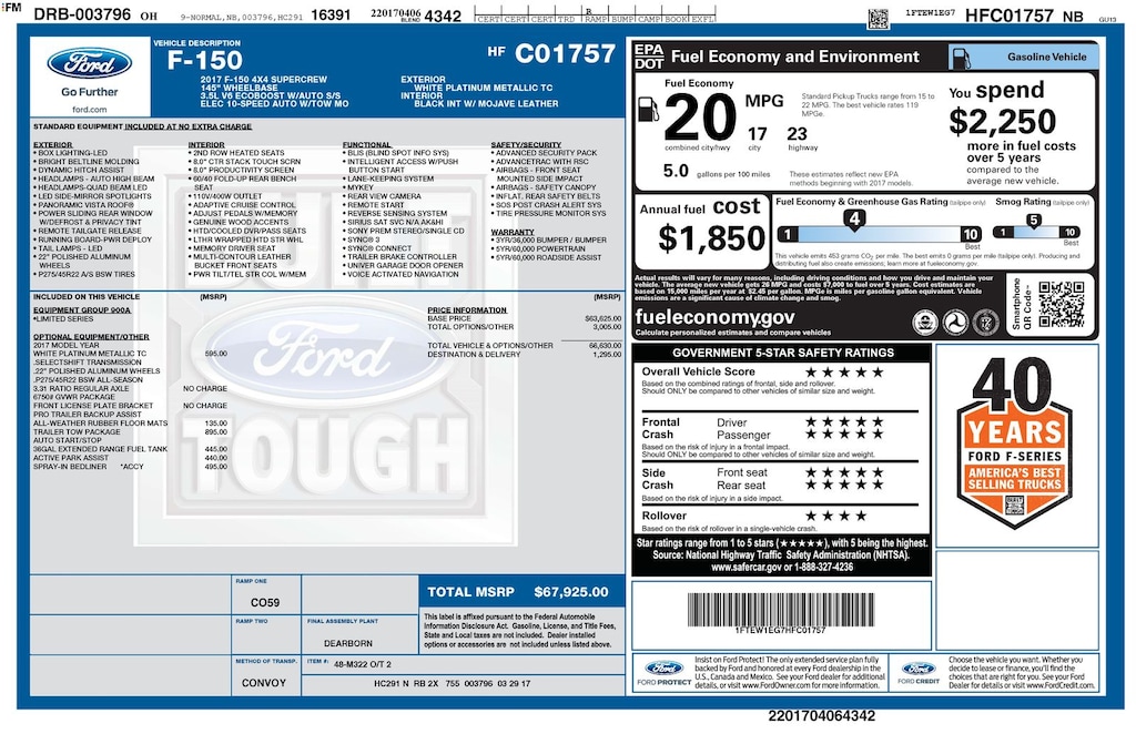 This F-150 Lariat replaces an older Super Duty that was thirsty for expensive diesel fuel. I was hesitant to get the 3.5 liter eco-boost engine because the reviews seemed too good to be true, but it’s every bit as good as they say. The truck is roomy, quiet, and comfortable. I’ve had zero problems since new, and haven’t yet even opened the hood. My only concern is the seemingly hundreds of buttons, knobs and switches I cannot read, reach, or see in the dark.…