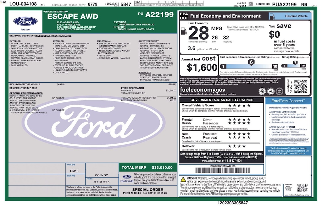 - 1FMCU9GN6PUA22199