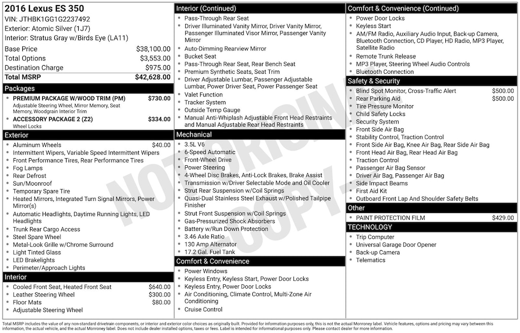 - Premium Package w/Wood Trim$730