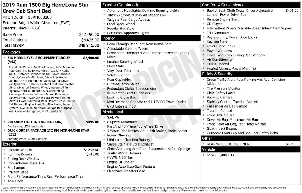 So I optioned first a 2019 Ram Bighorn,8.5 inch nav loaded screen,Level II package,4x4,3:92 axle ELocker,6ft bed.Got pricing from 5 Ram dealerships.Went to 3 Ford dealership’s and all of them never beat the price of the Ram 1500.And these were either ordered or on lots F-150 XLT trim with upgraded to 5.0L V-8 I did not want the V-6 TT turbo engine option to much money with 10 speed.Chevy’s trucks interior was even close in terms of comfort and center-stack just look old schooled.Both the Ford and the Chevy were more money or with in 900.0 dallors of the Ram 1500 but the styling and interior was just way better than the Ford F-150,and the Silverado...GM was not discounting hardly at all so the dealers were bring the price down on there side..Ford F-150’s interior was well just cheap looking with the small screen and hardly had no center storage because the shifter was there,not like the Ram 1500 had. The Ram 1500 center console is just way better design by a mile...Test drove all 3 and the Ram with the coil spring rode the best hands down and was far quieter inside while driving in city traffic during rush hour..My previous truck was a 2014 Ford F-150.I was a brand loyal kinda guy but after all the trips to these dealerships it became evident the Ram 1500 was the easy choice with my hard earn dallor..…